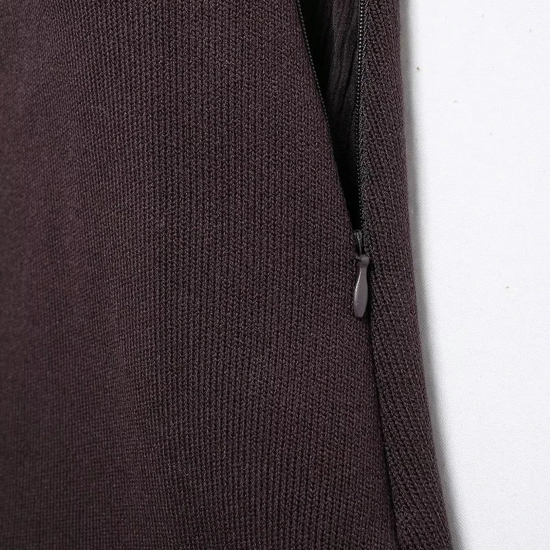 Er ist aus hochwertigem Strickstoff gefertigt und garantiert Langlebigkeit und eine bequeme Passform für den Alltag oder besondere Anlässe. In Kombination mit einer Bluse für die Arbeit oder einem gemütlichen Pullover für Freizeitaktivitäten macht dieser Rock das Styling einfach und elegant.