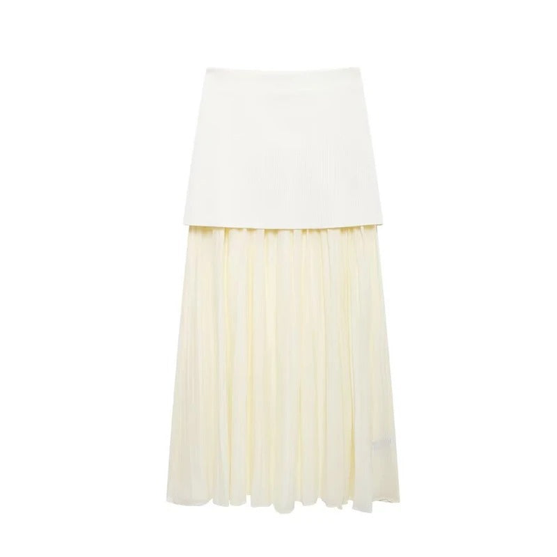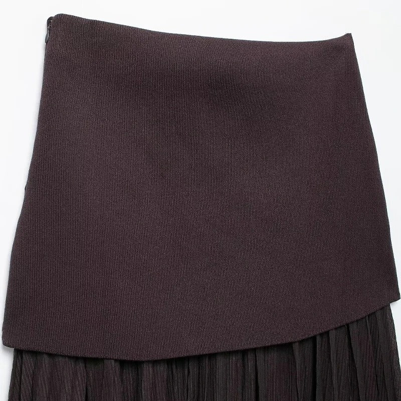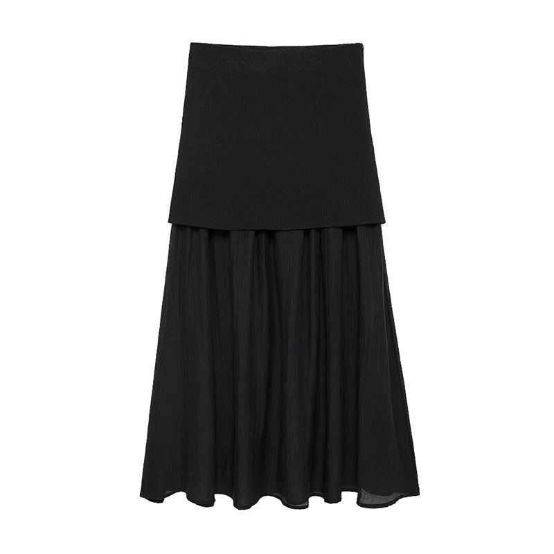 Verleihen Sie Ihrer Garderobe mit diesem vielseitigen Midirock einen Hauch von zeitlosem Charme. Mit seiner schmeichelhaften hohen Taille und den aufwendigen Patchwork-Falten kombiniert dieser Rock mühelos Vintage-Ästhetik mit moderner Eleganz. Der seitliche Reißverschluss sorgt für einen bequemen Tragekomfort und eine schlanke Silhouette.