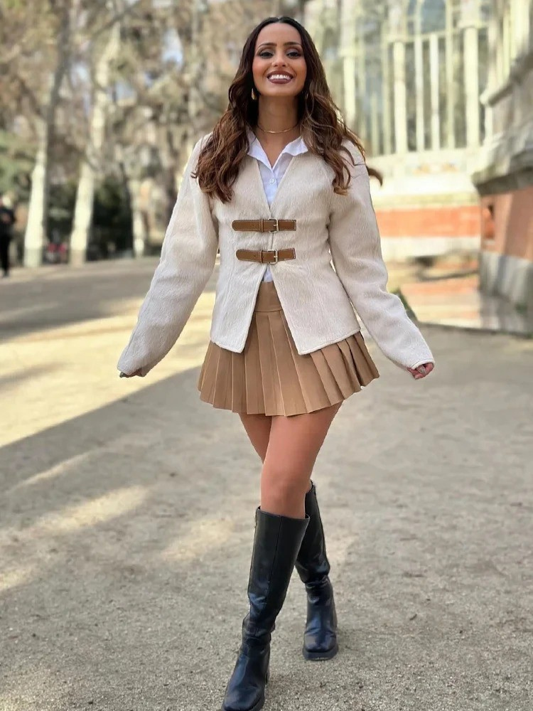 Hüllen Sie sich in Raffinesse mit unserem Wollmantel für Damen mit Vintage-Lederschnalle. Dieser Mantel hält Sie warm und ist gleichzeitig ein Statement. Er hat eine taillierte Passform und einen Einreiher, der mühelos Vintage-Charme mit moderner Funktionalität verbindet.