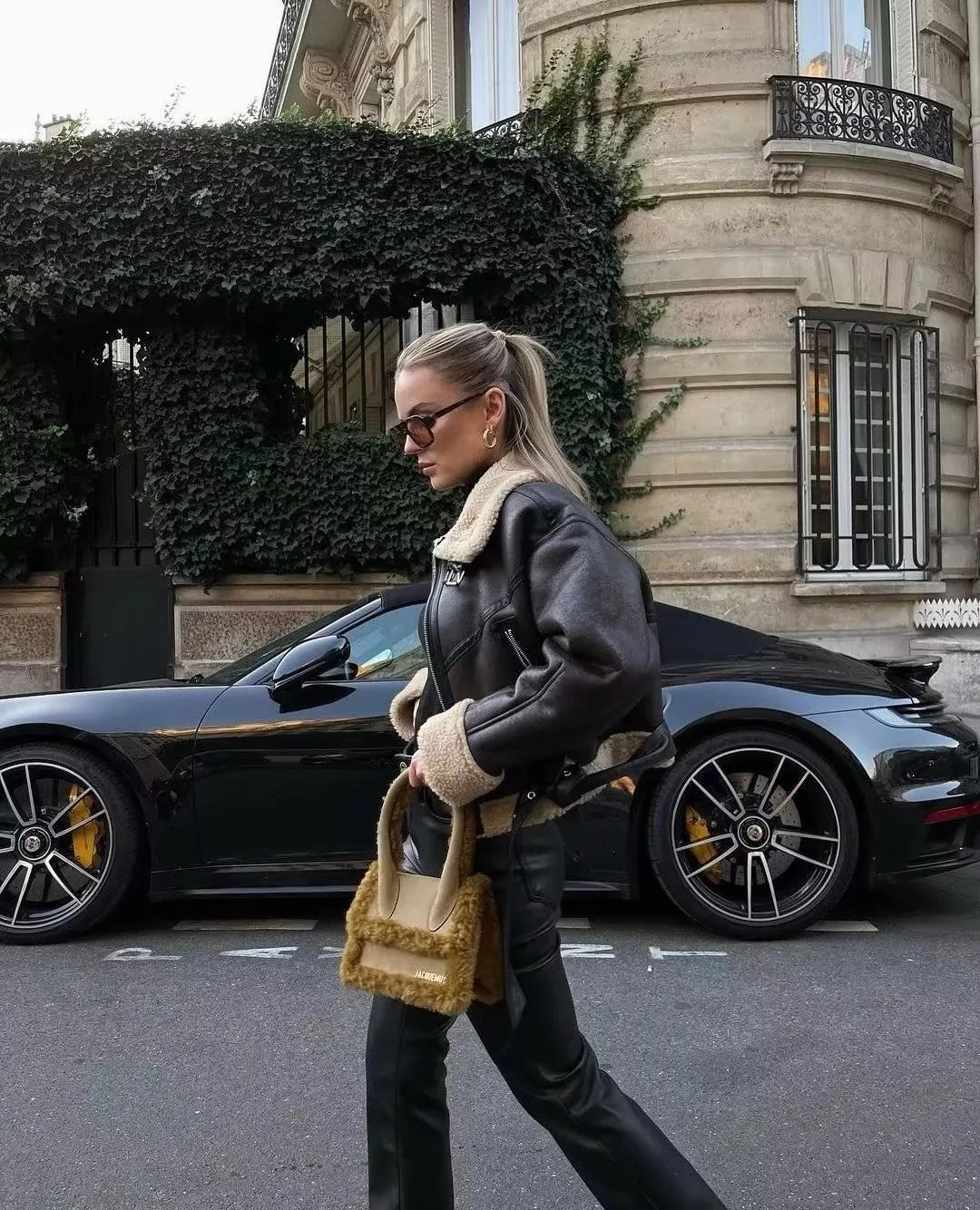 BLEIBEN SIE KUSCHELIG UND STILVOLL MIT UNSERER DAMEN-SHEARLING-JACKE MIT VINTAGE-GÜRTEL AM SAUM!