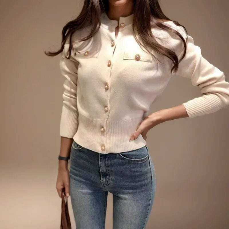 Verleihen Sie Ihrer Garderobe einen Hauch von Charme mit dieser langärmeligen Strickjacke, die sich das ganze Jahr über tragen lässt. Sie ist mit einem einzigen Knopf zu schließen und kombiniert zeitlosen Stil mit alltäglichem Komfort. Der weiche, atmungsaktive Strickstoff macht sie ideal für legere Ausflüge, Arbeitstage oder entspannte Wochenenden.