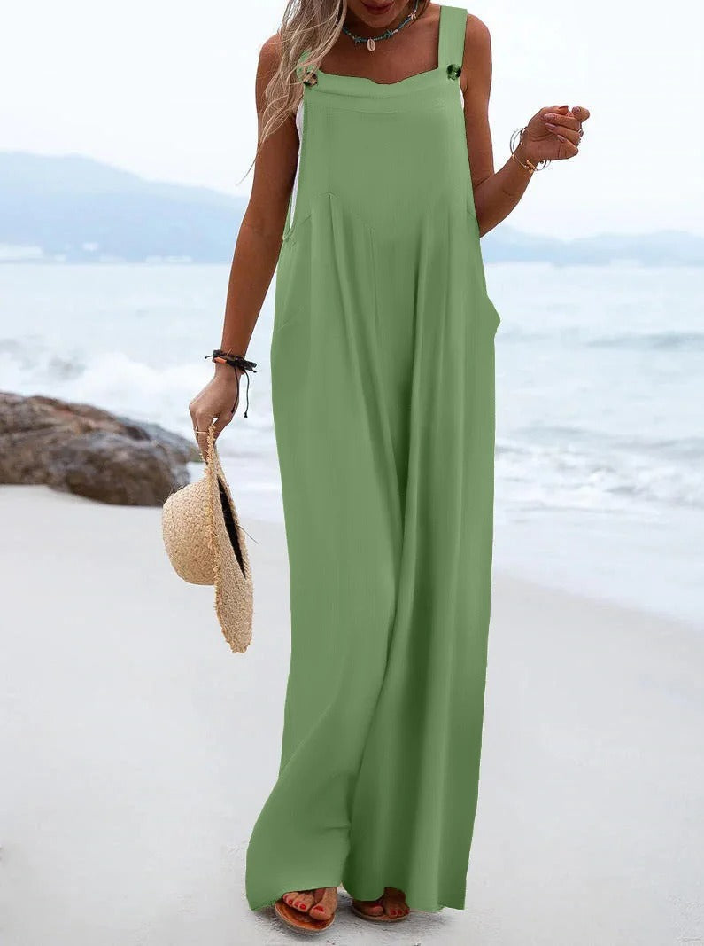 Bereichern Sie Ihre Sommergarderobe mit diesem leichten und bequemen Sommer-Jumpsuit für Damen. Dieser ärmellose Strampler ist für einen lässigen Stil konzipiert und hat eine lockere, entspannte Passform mit weitem Hosenbein für Bewegungsfreiheit. Die verstellbaren Hosenträger verleihen dem Outfit einen Hauch von Charme, während die praktischen Seitentaschen dafür sorgen, dass Sie Ihre wichtigsten Utensilien immer griffbereit haben.