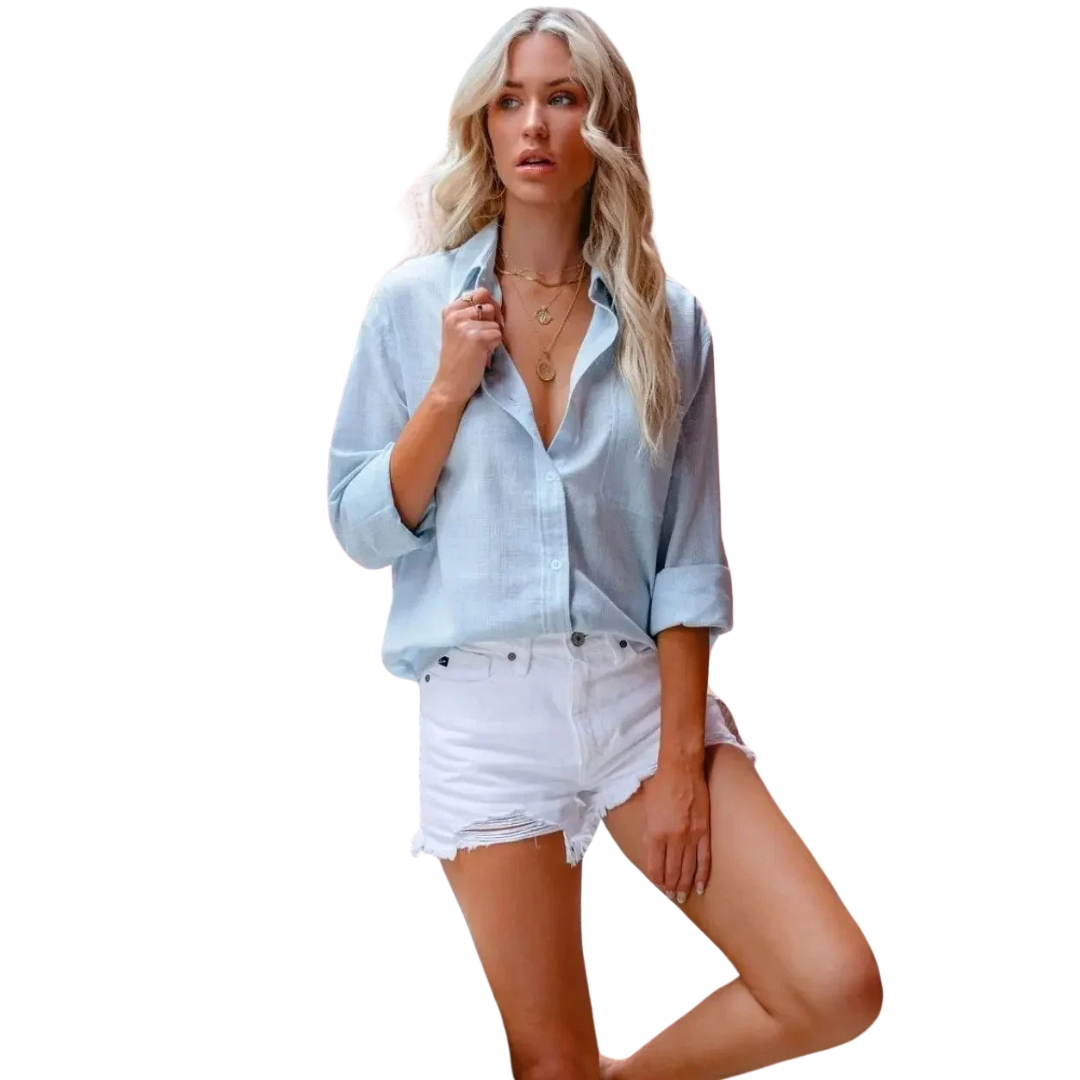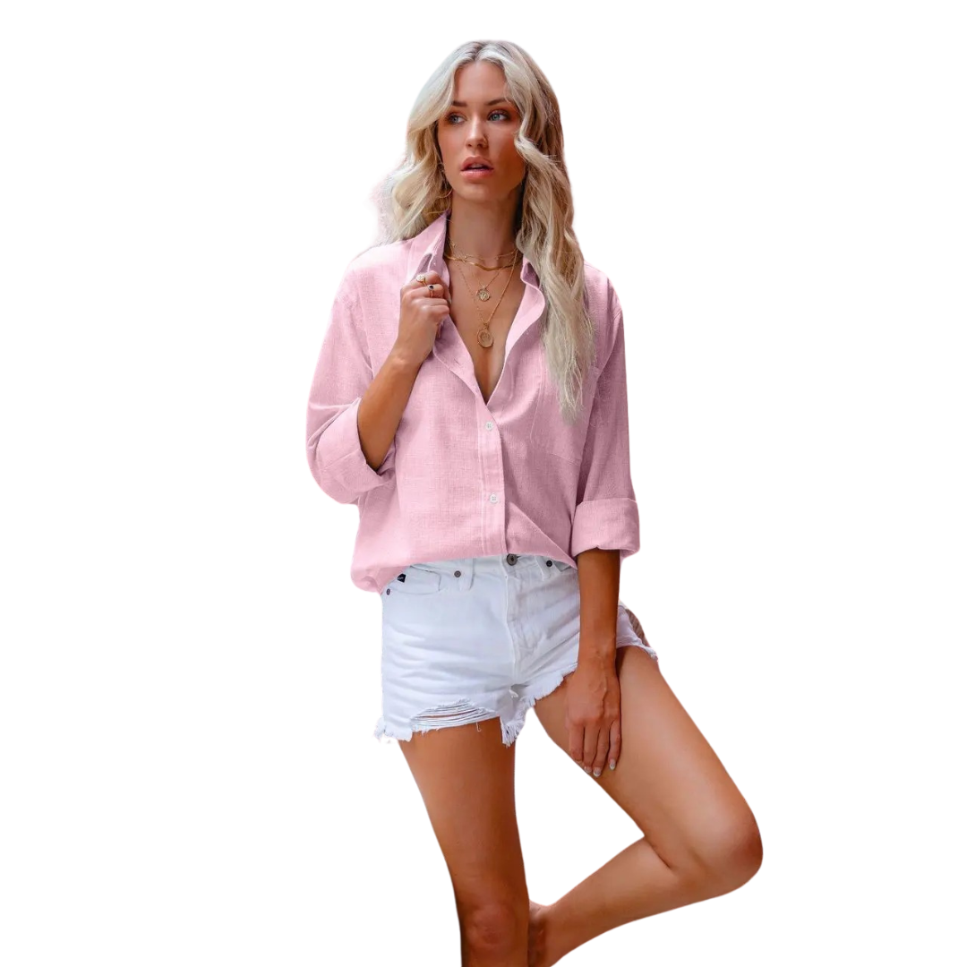 Verschönern Sie Ihre Garderobe mit dieser zeitlosen lässigen Leinenbluse für Damen, die für einen entspannten, aber stilvollen Look entworfen wurde. Diese locker sitzende Bluse mit Knopfleiste ist aus einem atmungsaktiven Baumwoll-Leinen-Mix gefertigt und fühlt sich leicht und bequem an – perfekt für jede Jahreszeit. Der klassische Reverskragen und die langen Ärmel sorgen für zusätzliche Vielseitigkeit, sodass sich das Hemd leicht für jeden Anlass kombinieren lässt.