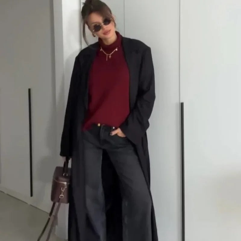 Sie suchen die perfekte Mischung aus Wärme und lässigem Stil? Dann ist dieser klassische burgunderfarbene Strickrollkragenpullover genau das Richtige für Sie! Mit seinem weichen, atmungsaktiven Strick und der lockeren Passform hält er Sie warm, ohne Kompromisse beim Stil einzugehen. Der kräftige Burgunder-Farbton verleiht ihm eine zeitlose Note und macht ihn zu einem unverzichtbaren Kleidungsstück für kühle Tage.