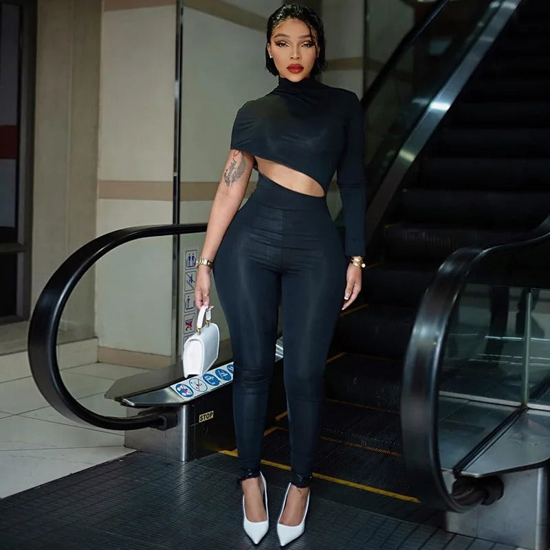 Setze mit diesem One-Shoulder-Jumpsuit ein mutiges Statement. Er wurde für selbstbewusste Frauen entworfen, die auffällige Mode lieben. Dieser Jumpsuit hat ein schlichtes Design mit einer Schulter und einem stilvollen Cut-out-Detail und bietet die perfekte Balance zwischen schick und modern.