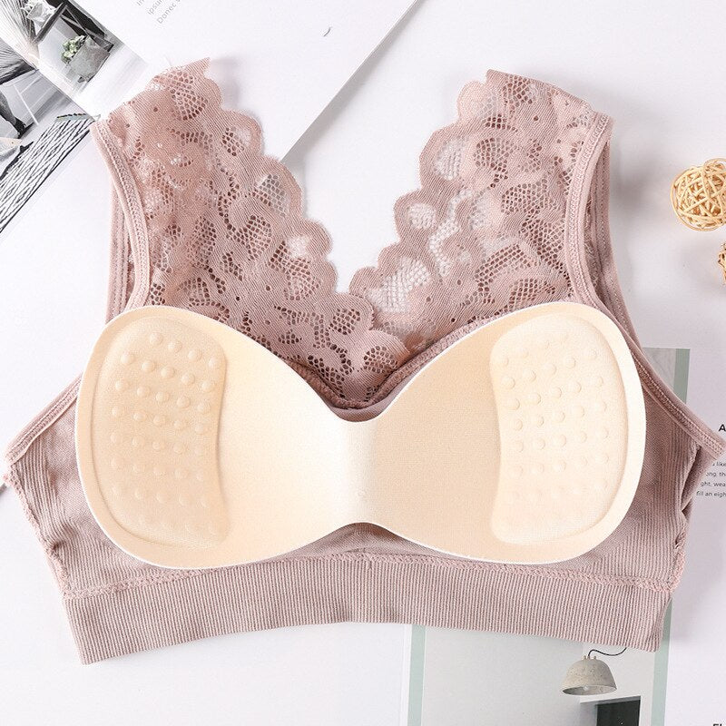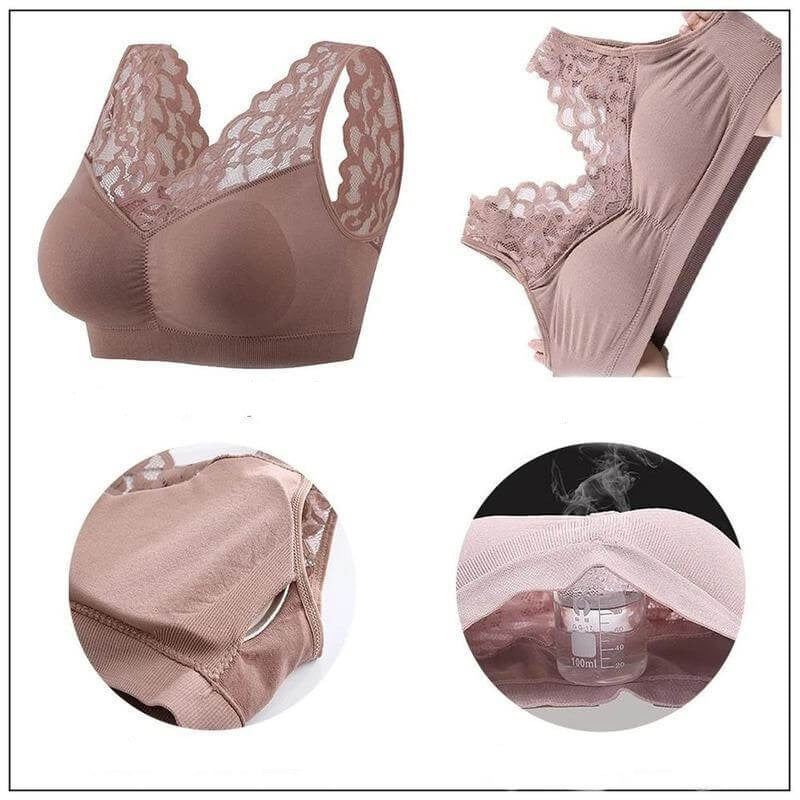 Der Super Elastic Breathable Bra ist ein kabelloser BH, der Ihre Brüste stützt. Er verfügt über breite, bequeme Spitzenträger, herausnehmbare geformte Polster, breite Seitenflügel und ein Unterbrustband für en Tragekomfort. Er hebt die Brüste an und akzentuiert sie gegen das Durchhängen, formt und konturiert eine schlankere Silhouette.