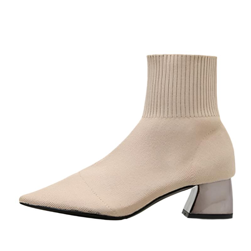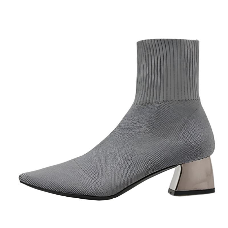 Bleiben Sie gemütlich und stilvoll mit diesen gestrickten Damenstiefeln. Aus weichem, gestricktem Stretch-Material gefertigt, bieten diese niedrighackigen Stiefeletten eine bequeme, flexible Passform, die Sie bei kälterem Wetter warm halten wird. Die schlichte, graue, spitze Spitze sorgt für ein modernes Flair und macht diese Stiefel zu einer perfekten Ergänzung für jedes Outfit.